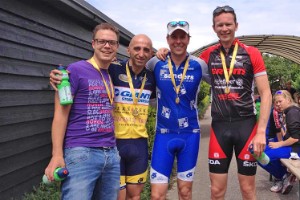 Drie-en-dertig jaar (april 2015) Maar liefst 33 jaar was het geleden dat ik mijn laatste wedstrijd reed op Sportpark de Meerdijk in Emmen. Aan die periode kwam op paasmaandag 6 april 2015 een eind tijdens de Rabobank Eierrace. Voor het eerst in heel veel jaren reed ik weer (met 85 anderen) een koers op eigen bodem. Drie constateringen: de rijrichting bleek veranderd, het parcours was ineens wel erg klein en krap en voor het eerst viel mijn tenue eens niet erg op in het peloton. De koers zelf was hectisch. Erg veel geduw en getrek en veel valpartijen. Ik kwam de finale echter goed door en reed naar een verdienstelijke 8ste plek. Met iets meer parcourservaring had er meer in gezeten, maar as is verbande turf zeggen ze in Drenthe. Tevreden dus en besloten om maar eens wat vaker langs te gaan. | Vroege eerste seizoenszege (maart 2015) Ik win traditioneel weinig in het vroege wegseizoen. Pas tegen eind april is de motor op toeren gekomen en rol ik op Sloten weer af en toe als eerste over de finish. Dit jaar ging het iets anders en pakte ik de eerste winst op 1 maart. Na vier magere koersen in februari met slechte benen en absoluut geen macht, viel alles op z'n plek tijdens de vierde rit van de Midden Nederland Competitie op onze thuisbaan in Almere. Dankzij een fantastische lead in van Tommy Goes, kwam ik met voorsprong het finishstuk op en kon ik het van kop af aan afmaken met meerdere lengtes voorsprong. De eerste zege van 2015 zit dus al na een maand koersen in de pocket! En dan voel je die zure poten ineens net iets minder! | Keurig eerste volledige cross-seizoen Het eerste volledige cross-seizoen dat ik in de winter van 2014/2015 draaide, krijgt een voldoende! Hoewel ik nog steeds geen potten kon breken in de cross, maak ik toch kleine stappen de goede kant op. Zowel in Amersfoort, Nieuwegein, Nes aan de Amstel, Oostzaan, de Cocksdorp en Uithoorn en wist ik me keurig bij de betere helft van het peloton te handhaven. In Nieuwegein zat ik zelfs drie keer bij de eerste tien en in Texel wist ik zowaar een tweede plek uit de strijd te slepen tijdens een clubcross! Conclusie: gemiddeld genomen ligt mijn snelheid iets hoger dan vorig seizoen, loop ik makkelijker en zit ik technisch een stuk beter op de fiets. Maar winnen zit er voorlopig nog lang niet in. Veldrijden is en blijft een mooie winterhobby om spanning op de benen te houden, maar ik train in die periode (bewust) veel te weinig om mee te doen om de prijzen. Leuk is het echter wel! En dat is ook heel wat waard. Bekijk de foto's van cross-seizoen 2014/2015 en lees hier de uitslagen staan hier. | Vuurwerk als seizoensafsluiting (september 2014) Met de ploegentijdrit op de Afsluitdijk op 21 september sloot ik een succesvol wegseizoen af. Diverse overwinningen op Sloten, vrijwel alle criteriums bij de eerste tien gefinisht, winst en podiumplekken in ploegentijdritten en het grootste aantal kilometers dat ik ooit in een seizoen reed. Bij die mooie lijst paste een goed slot! En dat kwam er. Samen met Jeroen Akkerman, Federico de Marco en Thomas Verstraeten reed ik een recordrace op de Afsluitdijk. Ons gemiddelde van 49.42 km per uur was het hoogste dat ik ooit tijdens een wedstrijd haalde en we deden het verdienstelijk tussen de elite-teams in de A-categorie. Hopelijk volgt er een net zo mooi cross-seizoen, zodat ik volgend jaar de opgaande lijn verder kan doortrekken. | De aanhouders winnen (juni 2014) Eindelijk is het gelukt! Na 20 jaar deelname (en ontelbare tweede en derde plekken) won ik op zaterdag 21 juni met m'n team de ploegentijdrit van Dronten. Ons gemiddelde van 45.2 km per uur over het parcours van 30 kilometer lengte, bleek door geen enkel ander team te zijn overtroffen. Na de tweede plek tijdens de KNWU Ploegentijdrit van Zandvoort en de zesde plek in de ploegentijdrit van Almere waren we dus eindelijk eens de beste! Mooi! Nu een nieuw doel zoeken :-) | Een bocht te ver (mei 2014) Het ging ook te mooi... Zeges, alleen maar podiumplekken op rij, zelfs prijs bij het tijdrijden. Dat kon niet goed gaan en jawel, in het eerste zomercriterium van Almere ging het fout in de finishbocht. De koers zelf ging verbazend goed. Hoewel ik absoluut geen intervaltrainingen heb gedaan de laatste jaren, kon ik het tempo bij de elite en amateurs prima volgen. In de stromende regen zat ik al na een kwartier in een 12-mans kopgroep waar de andere elf renners gezamenlijk mijn leeftijd benaderden. In de finale brak het even, maar op minder dan een kilometer van de streep wist ik terug te komen en meteen naar voren te rijden. De finishbocht rondde ik als derde en de weg lag open voor een megasprint. Helaas pakte ik net een plasje olie mee en ging ik keihard op m'n bek. Ik vloog onder een geparkeerde vrachtwagen en m'n fiets er vol tegenaan. Gevolg: onder de schaaf- en snijwonden, kneuzingen en builen en de fiets total loss. Dure grap, volgende keer toch maar iets minder ambitieus zijn als het regent... | "Minder tijdrijden" en meer van die onzin (mei 2014) Vorig jaar kondigde ik aan minder te willen tijdrijden. Er zat na twee jaar te weinig progressie in m'n gemiddelden en ik finishte altijd in de middenmoot. Maar het bloed kruipt waar het niet gaan kan. Meer trainen bleek de sleutel tot een grote verbetering. Begin mei had ik al meer kilometers gefietst dan in heel 2013 en de resultaten verbeterden aanzienlijk. En dus werd er eigenlijk niet minder, maar steeds vaker tegen de klok gereden begin 2014. Na een 7de plek tijdens de ACT Tijdrit en een onveracht goed gemiddelde tijdens de Tijdstrijderscup in maart en april, reed ik in mei naar een 13e plek op de Adelaarstijdrit en resulteerde de KNWU Ploegentijdrit van Zandvoort zelfs en in een podiumplek (tweede op 3 seconden van de winnaars). Medio mei was ik opnieuw dichtbij het podium op de TVZ Zeewolde Tijdrit (derde op een seconde van het podium). Kortom: de trend is gezet: meer tijdrijden in 2014! | Racen op Zandvoort (mei 2014) Team Wielrennen Almere (Jeroen Akkerman, Thomas Verstraeten, Rob Aaftink e