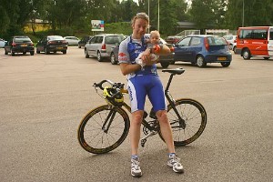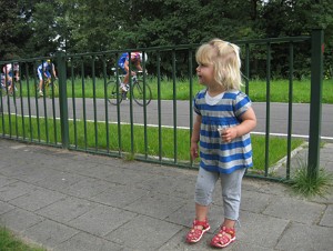 | | | In beeld (mei 2011) De nieuwe media doen hun intrede in het peloton. Wielrenners Twitteren zich suf, je kunt je hoogtemeters, de wattages van je sprints en je hartslag per seconde aflezen uit moderne fietscomputers, iedere licentiehouder koerst met een tijdregistratie-chip op z'n fiets en sinds kort krijgen we geweldige HD-videobeelden uit het peloton zelf! Collega-renner Herman Koning heeft een HD-camera op z'n fiets gemonteerd en registreert daarmee de gang van zaken in het peloton. Ik had het apparaat wel eens gezien, maar besefte niet dat hij die filmpjes ook op YouTube zette. Onlangs kwam ik deze korte film tegen van de finale van zaterdag 21 mei 2011 op Sloten. Ik won de pelotonsprint van die bewuste koers (zie de foto hieronder), maar nu is ook mooi te zien hoe ik als een heuse sprinter laf elke inspanning vermijd in de laatste ronde. Omdat ik de sprint won (en dus ruim voor Herman en zijn camera eindigde) is de spectaculaire sprint zelf niet te zien. Jammer, maar je kunt niet alles hebben. Bekijk hier de film! |  Wind mee (mei 2011) Hoewel ik in 2011 pas in maart op de fiets stapte, had ik eind mei al meer kilometers op de teller dan in het gehele seizoen 2010. Met een nieuwe fietsonder de kont leek een mooie erelijst een kwestie van tijd. Maar voor het eerst wilde het lichaam niet meer wat het hoofd wilde. Kwestie van leeftijd, maar toch een confrontatie die me niet lekker zat. De nieuwe fiets rolde niet plezierig, de benen wilden niet en de motivatie haperde. In mei kon ik echter weer goed meedoen bij de veteranen. De pelotonsprints won ik weer. Soms nipt, soms met overmacht (zie foto). Eind mei reed ik weer in diverse kopgroepen en begon de fiets ook meer te doen wat ik wilde. Eindelijk een beetje meewind! |  En weer een comeback! (2010) Als je dacht dat Lance Armstrong vaak terug kwam: ik ben in 2010 aan m'n driehonderdste comeback begonnen. Na mijn onverwacht goede resultaat in het voorprogramma van de Ronde van Spanje in 2009 heb ik van schrik de fiets zeven maanden lang geen enkele keer aangeraakt. Na een reis van twee maanden door zuidelijk Afrika beklom ik pas medio mei 2010 weer het trapijzer. In het begin was het ongenadig afzien, maar eind juni had ik m'n draai weer te pakken en ontdooide het oude lijf uit de winterslaap. Met nauwelijks 800 kilometer op de teller won ik op 29 juni mijn eerste koersje. In juli kwamen daar een derde en een vierde plek op Sloten bij. Telkens met winst in de sprint. Tijdens de trainingen kon ik weer concurreren met de Elite-coureurs. Op Sloten werd ik zowaar vereeuwigd in het wiel van Nederlands kampioen bij de professionals Niki Terpstra. Met de handen OP het stuur nota bene ;-)) Conclusie: geen lange winterslapen meer en desnoods maar met hardlopen en krachttraining het lichaam in vorm houden. Bekijk het foto-overzicht. |  Comeback boven verwachting (september 2009) Na de geboorte van Floortje - medio 2006 - schoot het fietsen er grotendeels bij in. Slaaptekort en ouderlijke zorg voor de kleine hummel bleken funest voor de sportieve prestaties. In 2009, toen dochterlief beter ging slapen, stapte ik als 40-jarige na twee volledig koersloze seizoenen weer op de fiets. Ondanks een forse conditionele achterstand en te weinig tijd om te trainen, ging het verbazend goed. Zo behaalde ik in 2009 mijn eerste zege sinds 2006, en 16 top-10 klasseringen (waarvan negen top-5 en zes podiumplekken). Ik reed mijn snelste koersronde ooit op Sloten (49.3 km per uur), werd tweede tijdens de Driedaagse van Sloten en zesde in het sterk bezette nationale amateur A-criterium van de Ronde van Spanje in Assen. Nu zit het seizoen erop en ga ik een maandje in winterslaap om begin november de draad - hopelijk weer net zo succesvol - op te pakken. Bekijk het foto-overzicht. | | Zesde in de hel van Spanje (Augustus 2009) Na een reeks hoge uitslagen bij de veteranen, blijk ik ook landelijk bij de A amateurs nog steeds de koers te kunnen maken. Op 29 augustus behaalde ik een zeer verdienstelijke zesde plek in het criterium van de Ronde van Spanje in Assen. De koers was memorabel: op de TT-baan teisterden slagregens, hagel en stormwind het 200-koppige peloton. Het was meteen duidelijk dat de kop van het peloton de beste plek was en daardoor begon de koers agressief en fysiek met een verschroeiend gemiddelde (45 met wind tegen, boven de 60 met wind mee). Toen de hemelsluizen definitief open gingen, brak het peloton in diverse stukken. Ik zat keurig in de 30-mans kopgroep die voorop bleef. Op 4 ronden voor het eind reden er drie man weg. Gezien de gladheid, de slijtage in de kopgroep en mijn sprintvermogen besloot ik te wachten en te gokken. Op 250 meter van de finish elleboogde ik me naar voren en trok de sprint zelf aan. Ik gokte erop dat de renner die het eerst door de Geert Timmer-chicane zou komen, de sprint zou winnen. Op het finishstuk kwam ik nog dichtbij de vluchters, maar viel ik helaas te vroeg stil. Een zesde plek was m'n deel. Vooraf zou ik meteen getekend hebben voor die positie, maar achteraf had er misschien nog wel iets meer ingezeten. Bekijk het foto-overzicht. |  Puike Driedaagse (Augustus 2009) De veteranenstatus brengt ook voordelen met zich mee. Na jaren aanpoten kon ik me in de Driedaagse van Sloten eindelijk weer eens meten met leeftijdsgenoten en hoefde ik niet op te boksen tegen afgetrainde profs en eliterenners. Het resultaat mocht er zijn! De persoonlijke records werden drie dagen aaneen geregen. Een reeks van een tweede, vijfde en derde plek leverde me een tweede plek in het eindeklassement op. Het was de beste serie die ik in 30 jaar wielrennen bij elkaar had gereden en de tweede plek was een verbetering van de derde plek in 2005 en de vierde in 2004. Als klap op de vuurpijl reed ik op dinsdag de snelste ronde van al mijn koersen op Sloten: 2,5 kilometer met een gemiddelde van 49.3 kilometer per uur! Al dat geweld leverde me na 240 kilometer koers maar liefst 30 euro op! Over lucratieve hobbies gesproken... |  Alleen op de foto (Juni 2